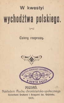 | W kwestyi wychodźtwa polskiego : cztery rozprawy | May 13, 2022 |