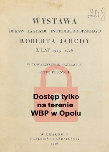 | Wystawa opraw zakładu introligatorskiego Roberta Jahody z lat 1925-1926 w Towarzystwie Przyjaciół Sztuk Pięknych | May 17, 2019 |