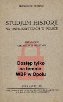 Title: Studjum historji na uniwersytetach w Polsce : studenckie organizacje naukowe