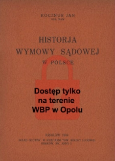| Historja wymowy sądowej w Polsce : (szkic) / Jan Kocznur | May 25, 2022 |