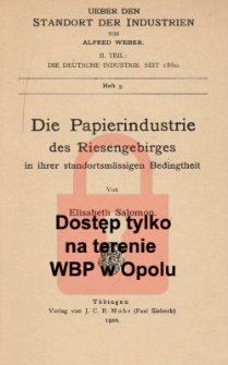 VI, 57 stron ; 24 cm ; Ueber den Standort der Industrien von Alfred Weber. II Teil: Die deutsche Industrie seit 1860. Heft 5